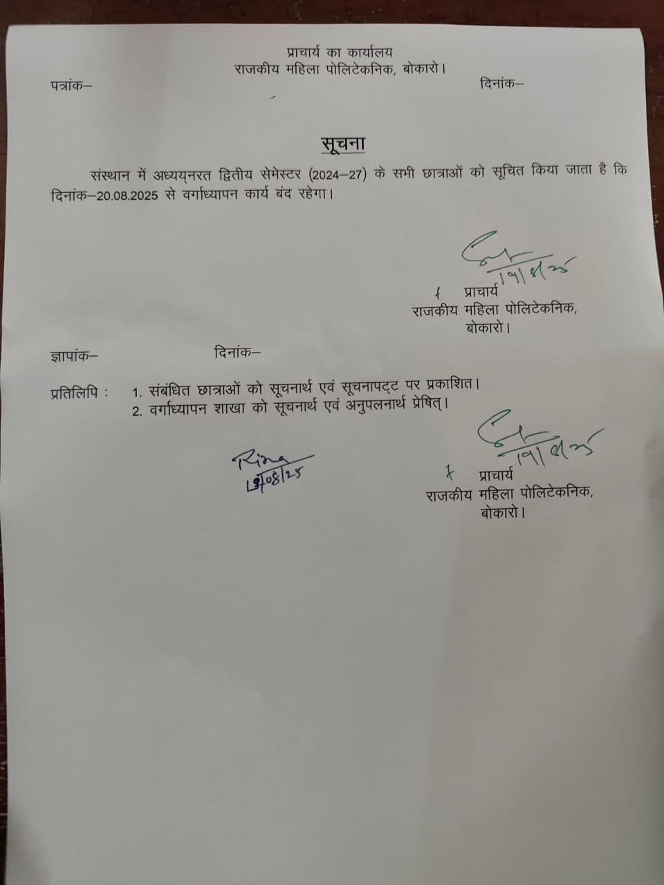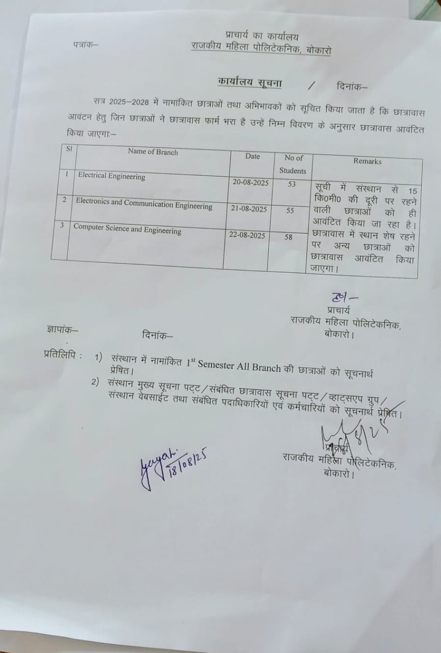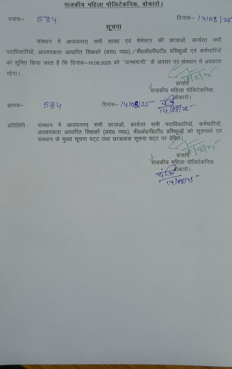 GWP BOKARO POLYTECHNIC NOTICE ON DATED 26/09/2024.